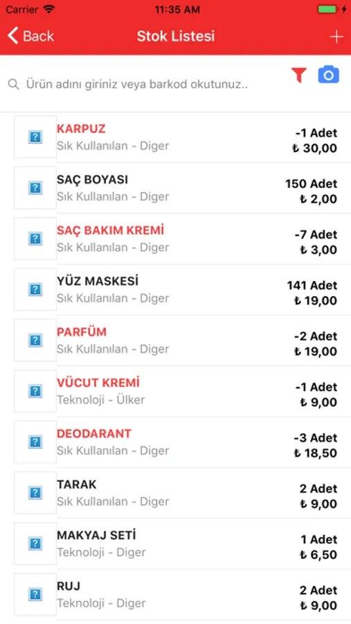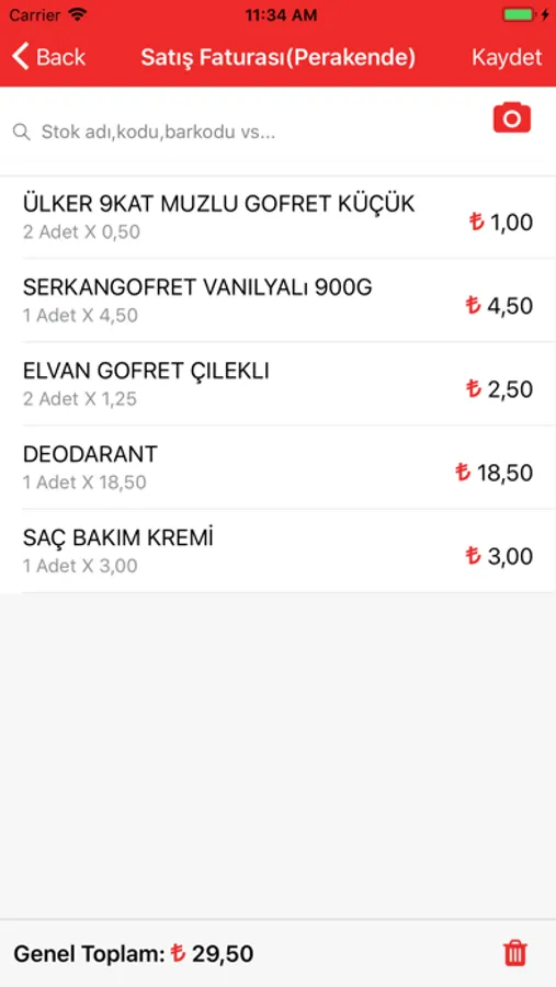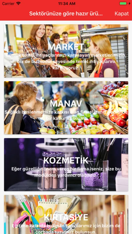 3. Hazır ürün listesini getirebilirsiniz (Manav, market, hırdavat vs.)