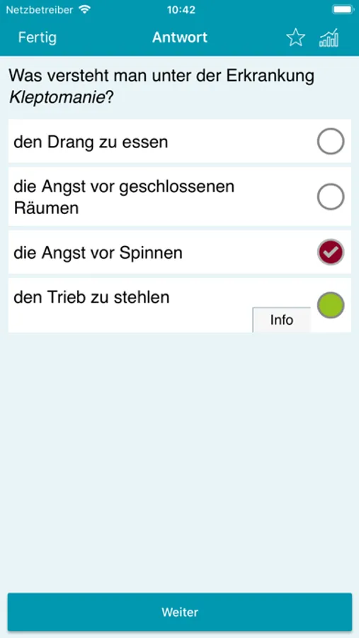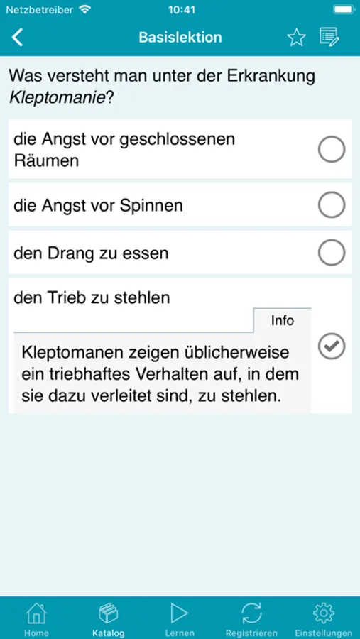 Durch das Speichern Ihres Lernstandes und die Offline-Funktion der Anwendung sind Ihre Lerninhalte immer für Sie verfügbar und auf Ihren Lernfortschritt angepasst. Dabei werden Sie von einem Algorithmus unterstützt, der Ihren Lernbedarf berücksichtigt, damit Sie vor allem die Inhalte lernen, die Ihnen schwerfallen. Unter anderem können Sie sich auf eine bevorstehende Prüfung vorbereiten (Prüfungsmodus) oder gezielt Ihr Langzeitgedächtnis (Langzeitgedächtnismodus) sowie Ihr Kurzzeitgedächtnis (Powermodus) trainieren.