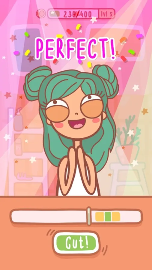 Once your customer is super happy with their haircut, you receive money and beat the level. The more money you earn, the more you can buy: