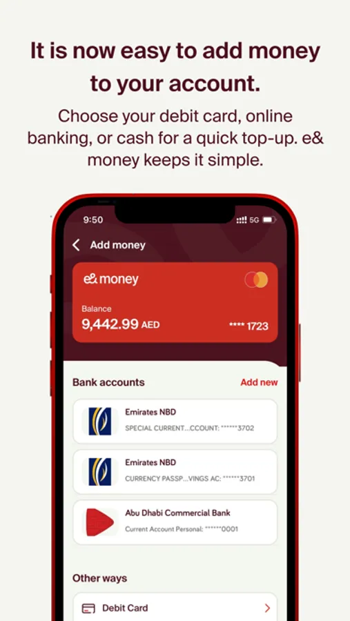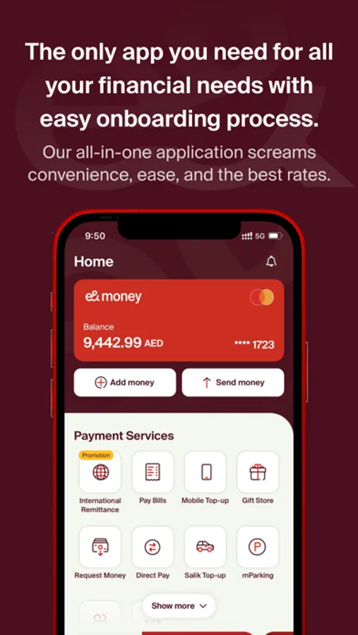 Our mission is to empower UAE citizens and residents with seamless payment solutions that are quick and hassle-free. With just your Emirates ID and mobile number, you gain access to a wide array of financial services within a single application. From a rewarding prepaid card, international and local money transfers to merchant payments, bill settlements, gifting, and beyond, e& money has you covered!