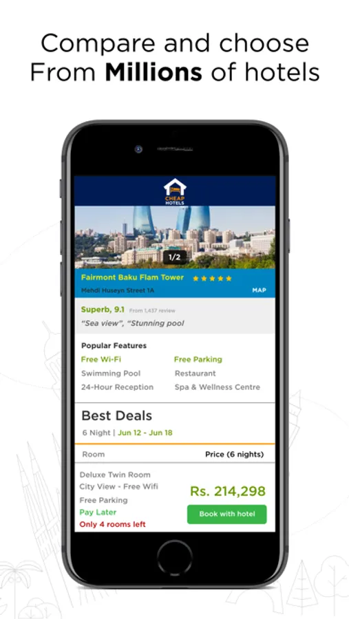 Cheap Hotel - Hotels Booking has enlisted accommodations for the users to select the best hotel that suits their needs. It helps tourists to book hotel rooms without any hassle to bear. Now you don’t need to worry about finding the accommodation, but by using this app, you will get access to unlimited hotel list all around the world.