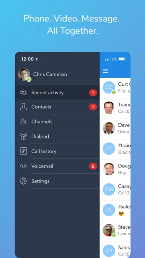 • Collaborate with teammates and co-workers using video, chat, and desktop sharing