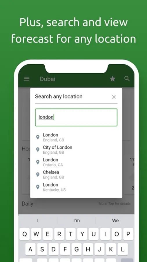 Even that our weather app target Dubai and all of UAE, we have still given you the option to search any location in the world and quickly check the weather forecast for that location.