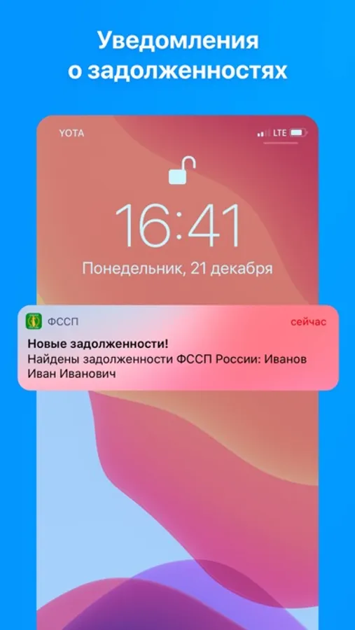 В дальнейшем вам не придется вводить повторно личные данные и вы будете получать уведомления при появлении новых задолженностей в "Банке данных исполнительных производств" по всем физическим и юридическим лицам, проверенным ранее.