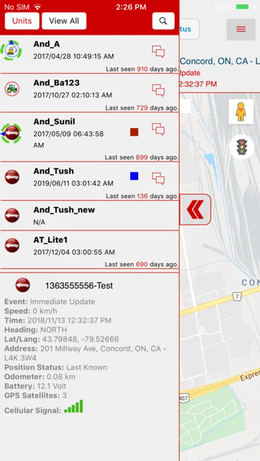 * GPS Tracker will show the details about the unit such as its location, battery, speed, direction, event, odometer, cellular signal, etc.