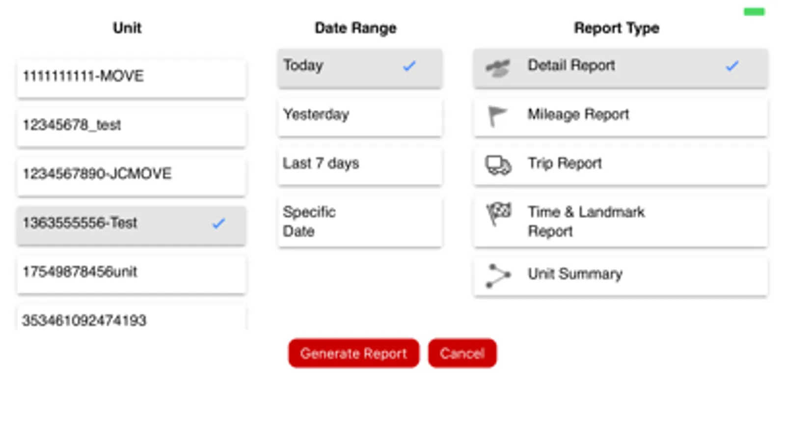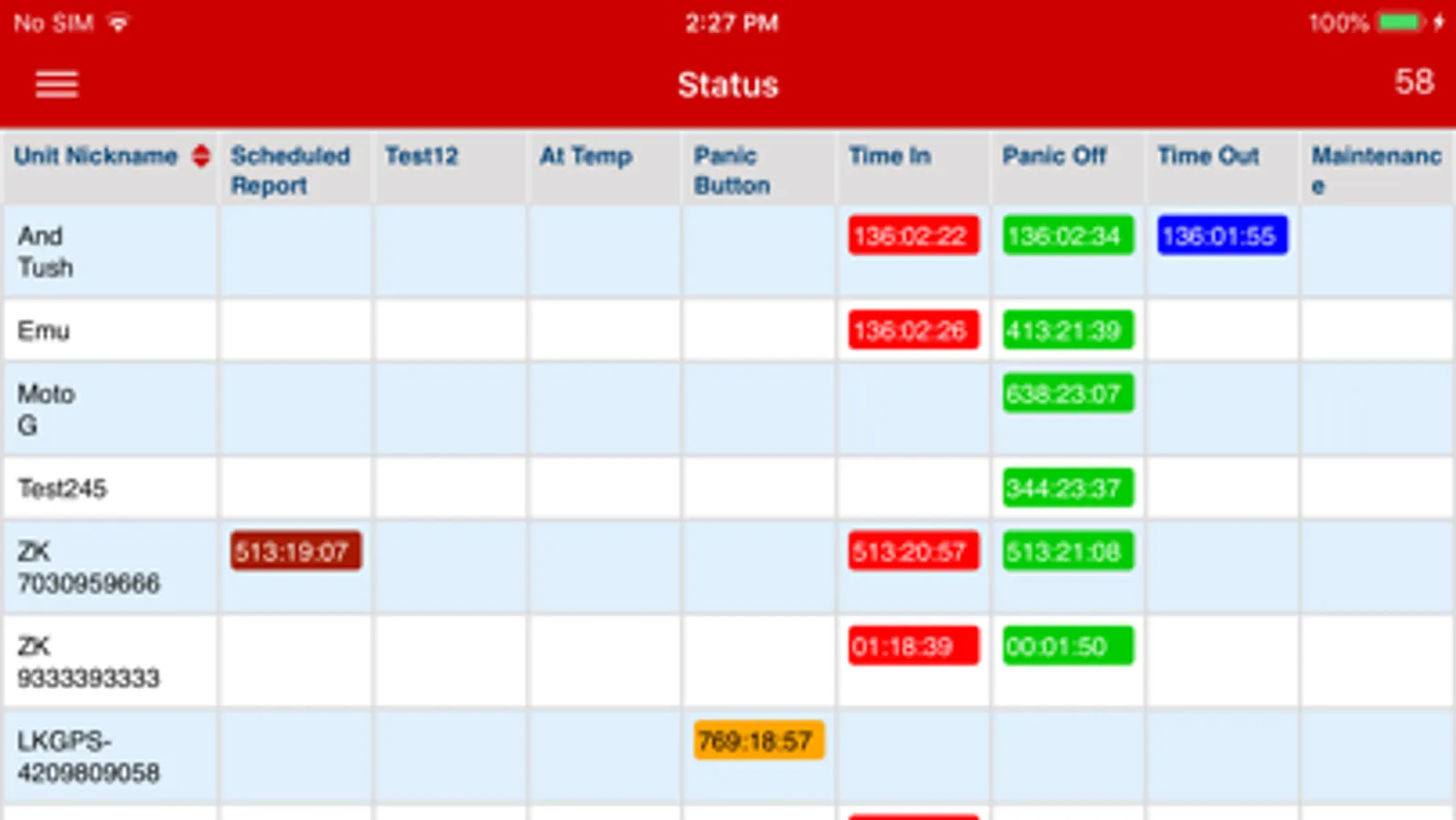 * Alerts about units current status will be received as a push notification and all the received alerts are displayed in list view.