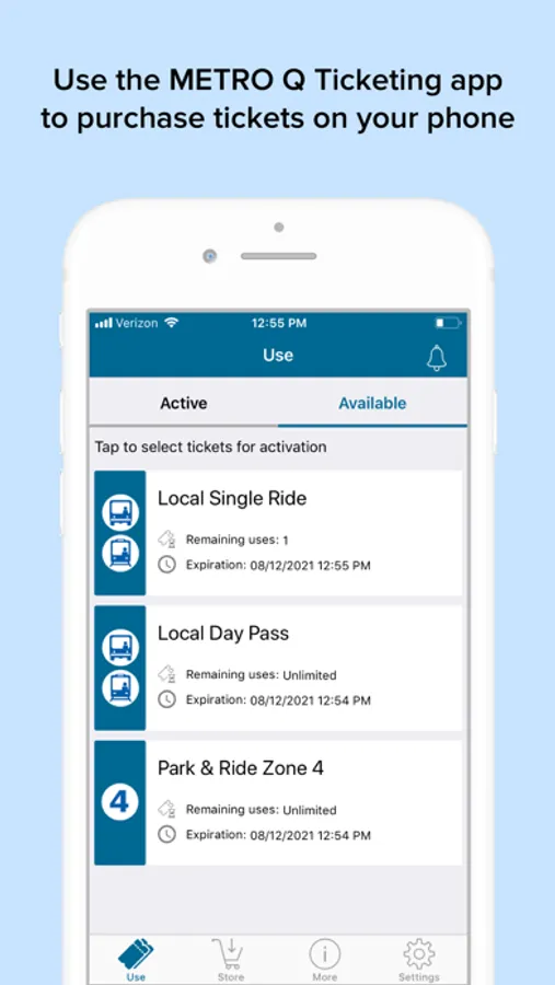 The official METRO Q Ticketing app allows you to purchase: