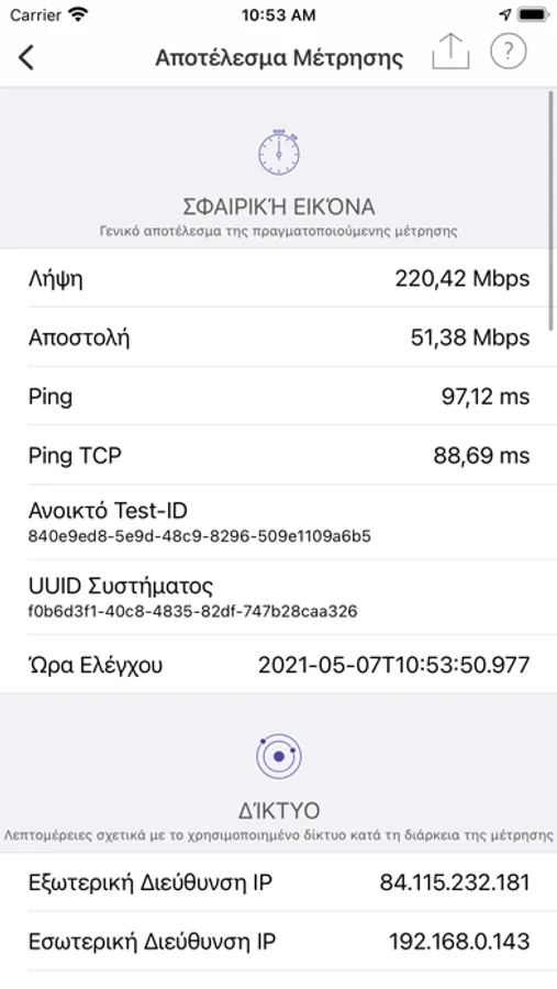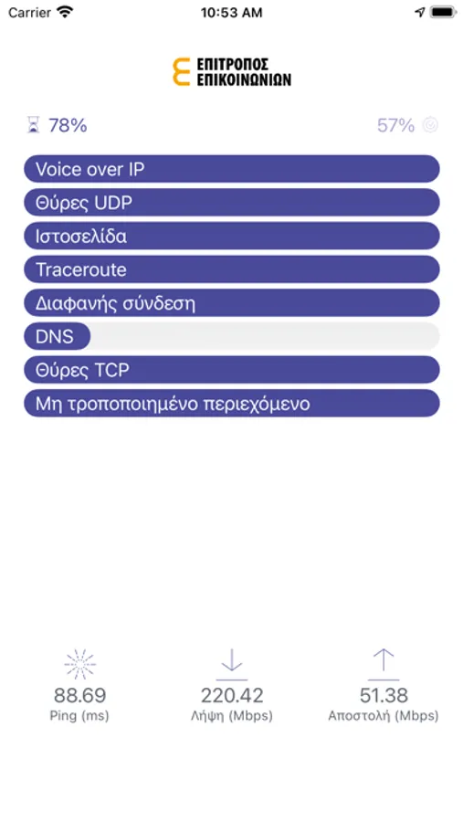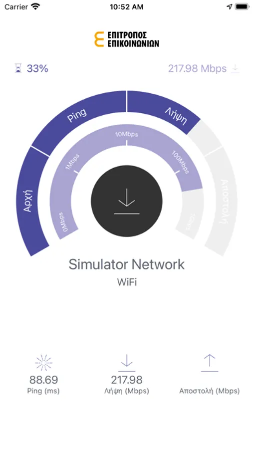 • Εκτέλεση μετρήσεων για εκτίμηση της ταχύτητας λήψης και αποστολής όπως και της καθυστέρησης (ping).