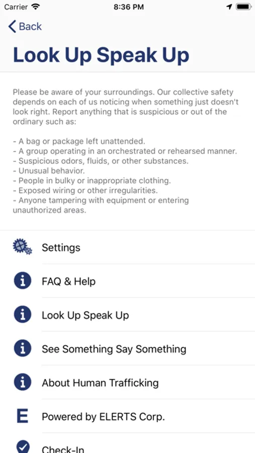 Maintenance Issues. Along with reporting security concerns, Look Up Speak Up can also be configured to report maintenance issues to increase awareness and expedite the repair.
