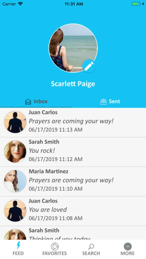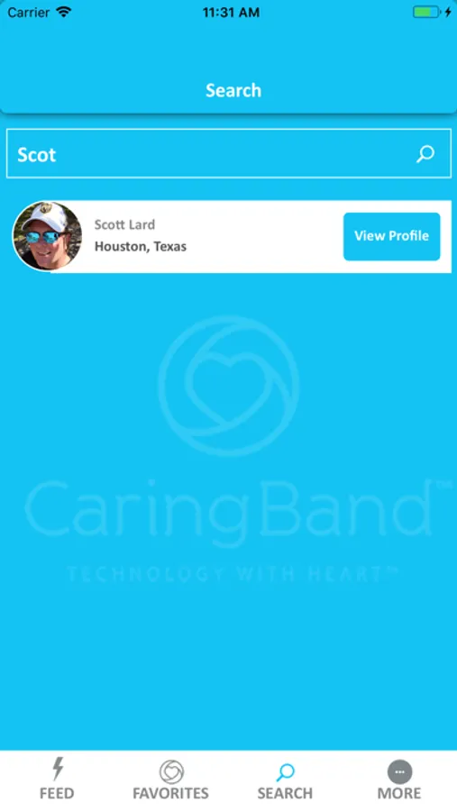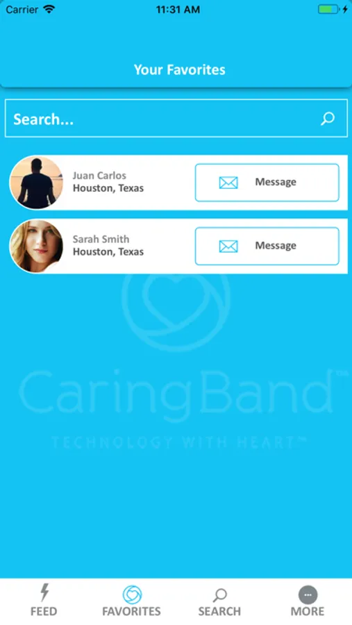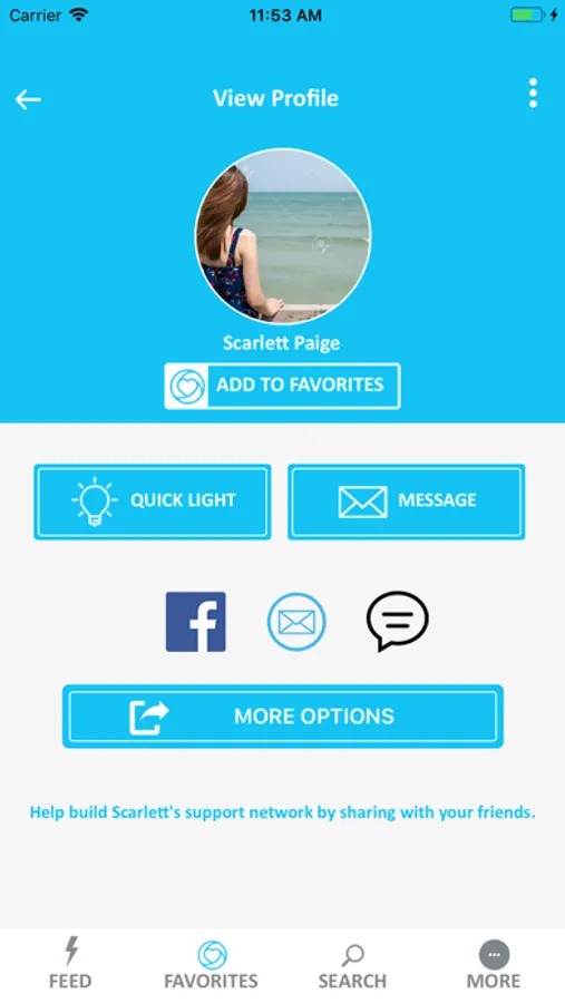 The CaringBand app has an embedded sharing feature so you can get others to send encouragement. Simply click on the user profile from the “Favorites” page to access your sharing options. Use our default message or your own to rally your network.