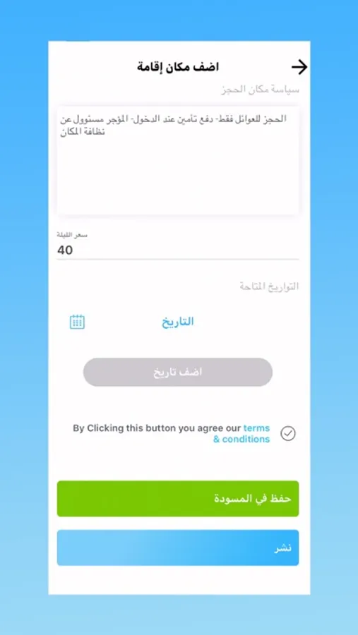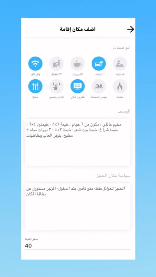 Kashtahport is an app, let you advertise your own property vacations, exclusively camps, chalets, and farms. To help the property owner to reach their offers to customers that they want to spend their vacations in one of the categories. you can advertise your property of kinds ( camps, chalet, farms) to all peoples around the world and receive money through debit or credit cards, and put your own terms and conditions for reservations