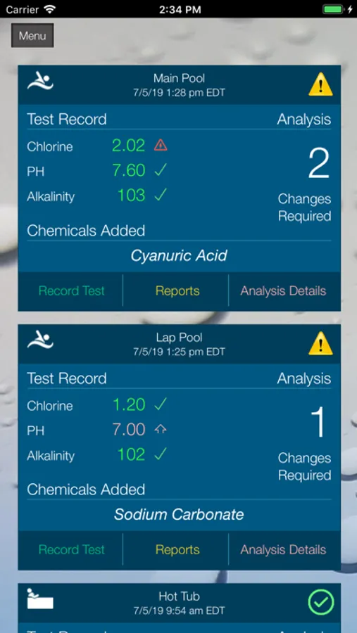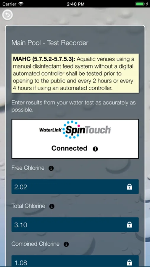 ** Reminders when pools need to be tested