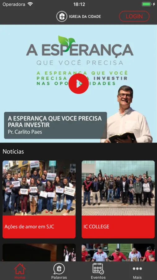 - Conecte-se com a igreja através dos grupos de interesse, receba conteúdo direcionado e obtenha sua carteirinha exclusiva.