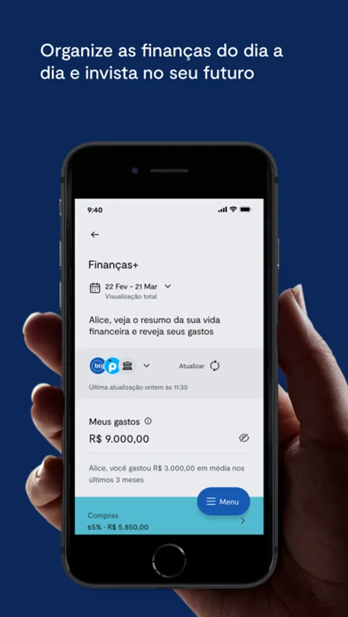 O Finanças+ oferece funcionalidades que permitem que você centralize a gestão das suas finanças. Você pode consultar um resumo com todas as movimentações da sua conta e cartão de crédito, visualizar seus gastos classificados em categorias e muito mais. Assim, é possível gastar melhor e investir mais, de acordo com os seus objetivos.
