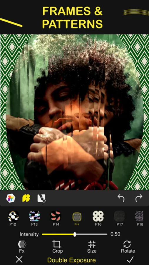 - Create beautiful and intricate double exposure with adjustable blending overlay filters.