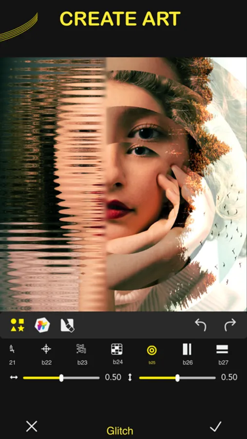 - Experiment with a variety of artistic glitches that will turn any image to a fascinating artwork.