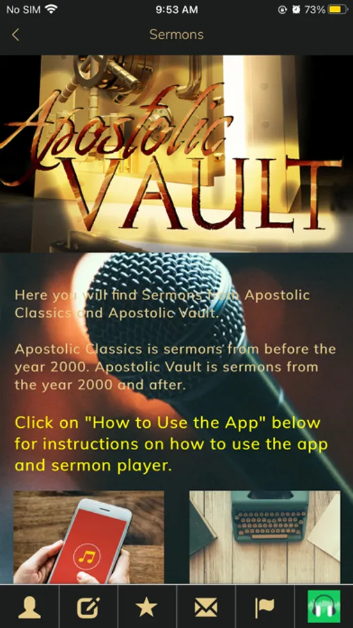 Apostolic / Pentecostal Sermons and Songs for you to listen to and be blessed. These are from Apostolic Classics and Vault's archives. Apostolic Classics is sermons from before the year 2000 and Vault after the year 2000. Features: Ability to lookup messages by minister. Access to Apostolic Classica dn Vault audio archives Live Events Apostolic Music Social Network Integration Easy to use contact page to contact us for support. This app has many interactive features enabling you to stay connected to Apostolic C&V, our ministries and events.