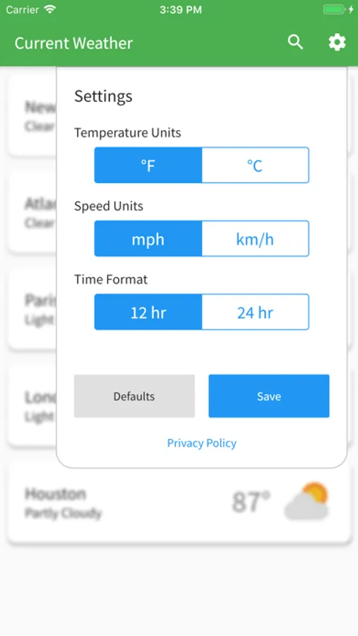 - Celsius or Fahrenheit, mph of km/h, 12hr or 24hr format