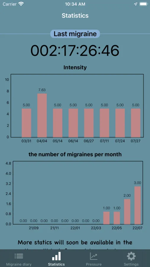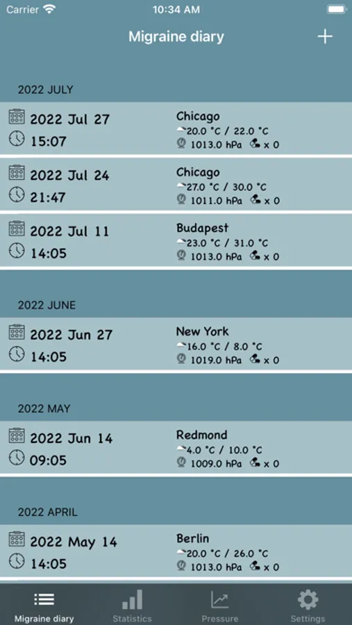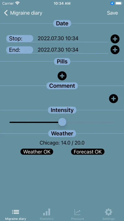 The Migraine diary+ will help you quickly record and identify all aspects of an attack, including migraine medications, frequency, duration, pain intensity, location.
