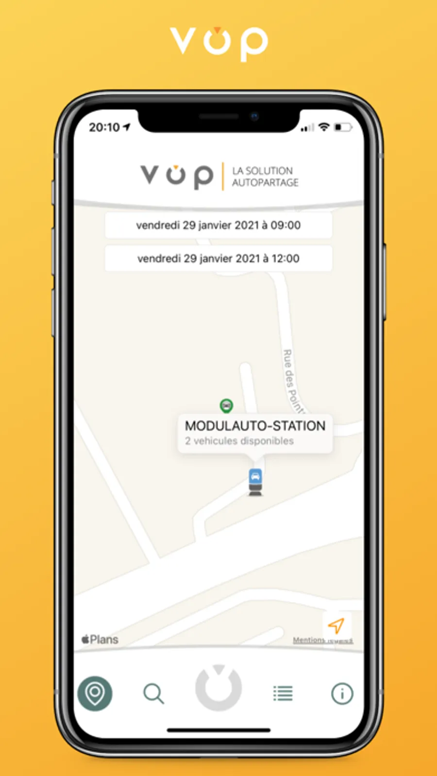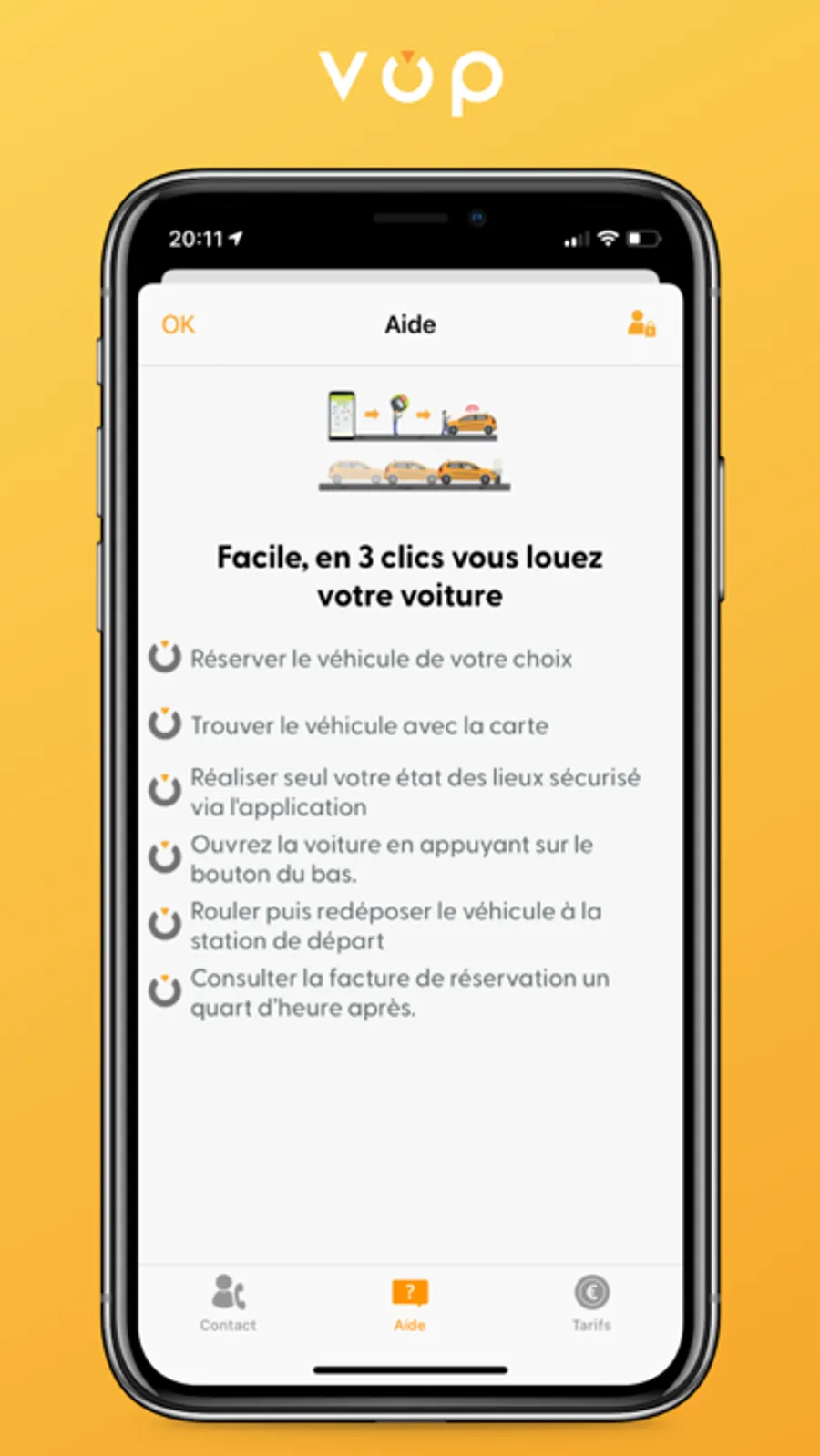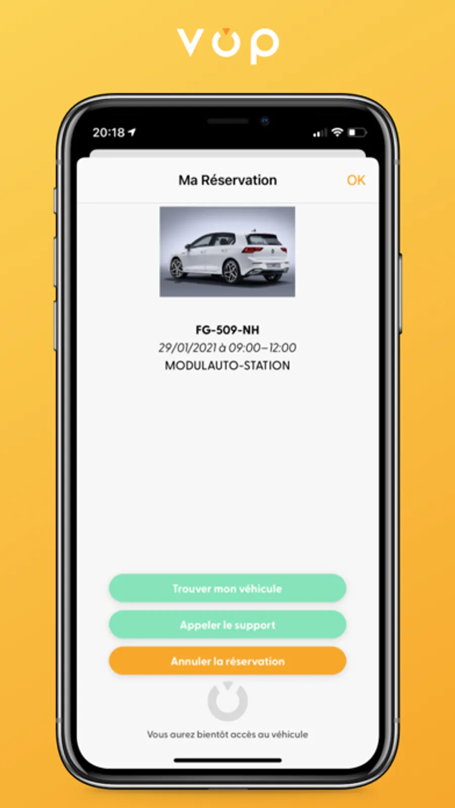 VOP est une application qui permettra aux utilisateurs potentiels et s’inscrire, réserver, ouvrir un véhicule et payer en ligne.