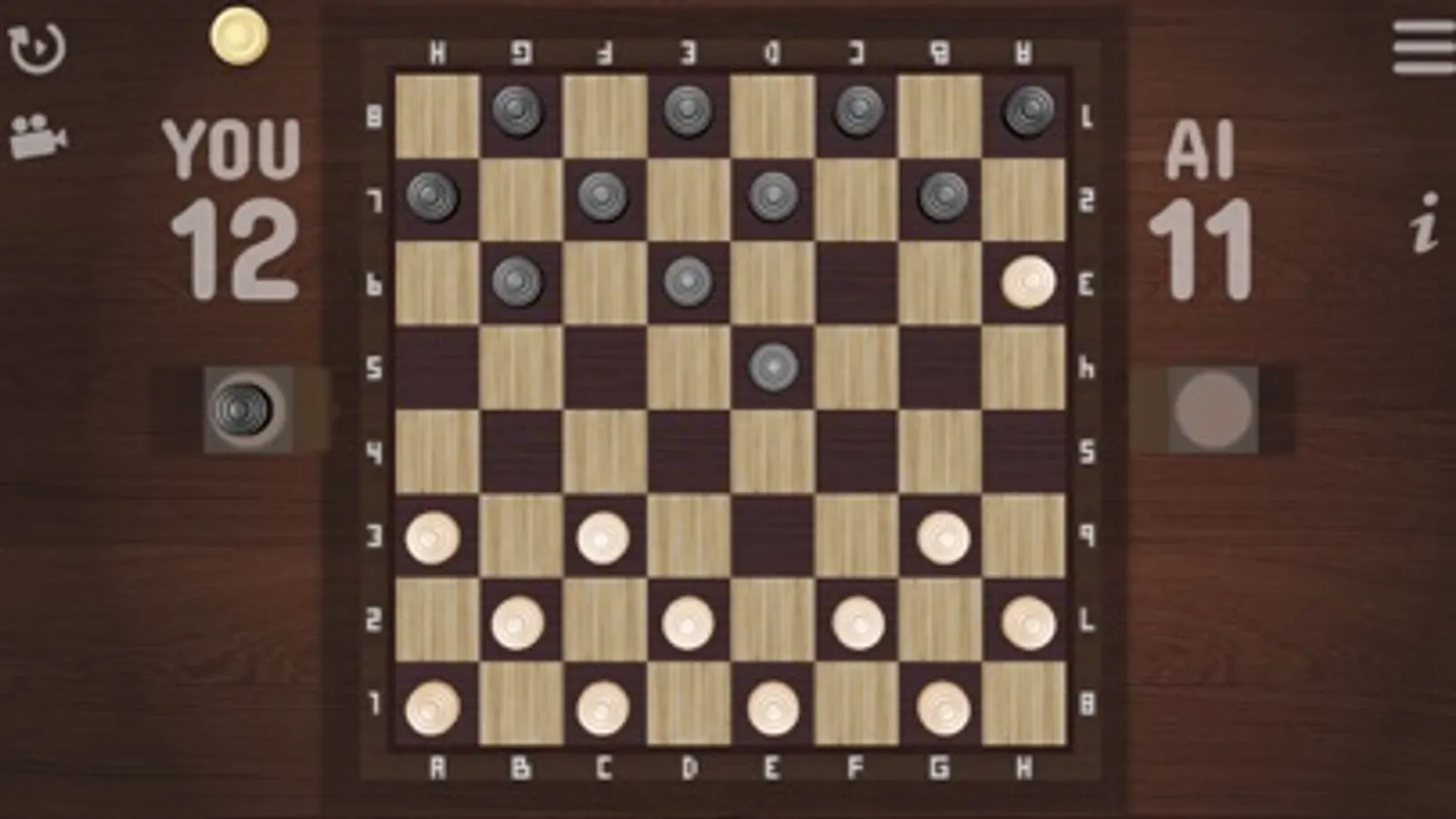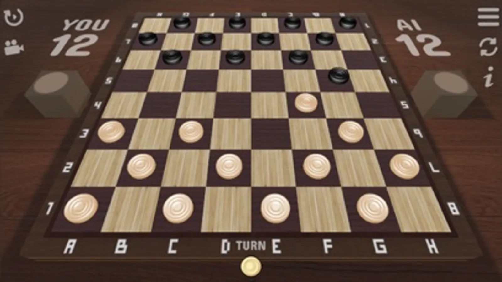 This is English (American) checkers. It is played on an 8×8 chequered board with 12 pieces per side. The simple checkers can move and capture forward only. If the simple reached the last row during the capture, then it becomes Super checker and stops, even if it is possible to continue moving. Super checker move forward or backward, one square at a time in a diagonal direction to an unoccupied square. Taking the opponent's checkers is mandatory.