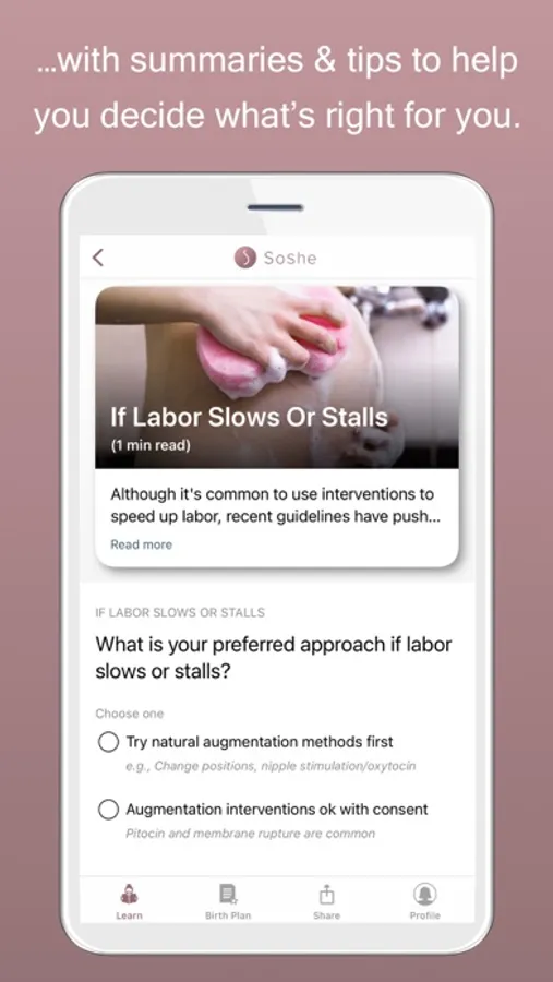 Given birth before but wishing things had gone better last time? You're not alone. Go deep on whichever topics concern you most. Less anxiety. A better birth experience. SoShe can help.