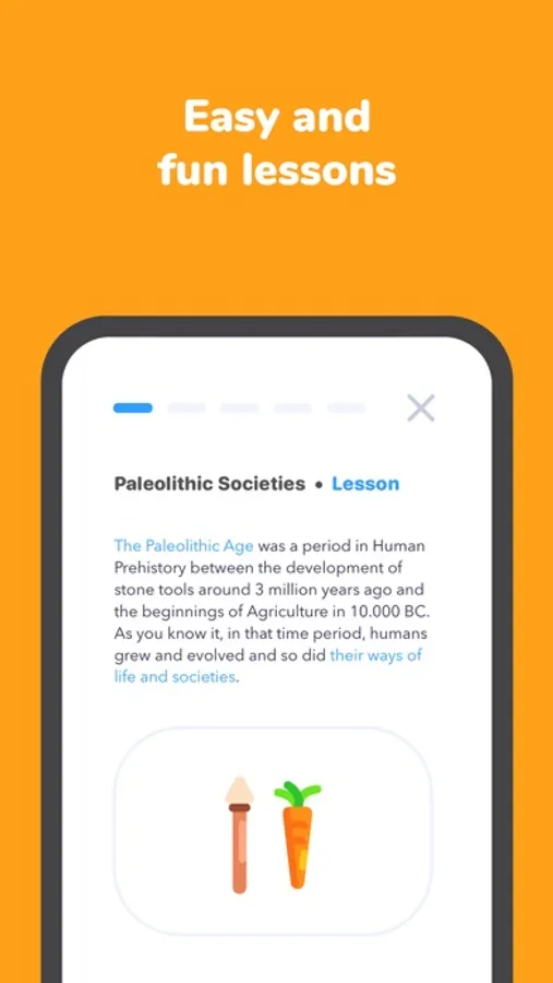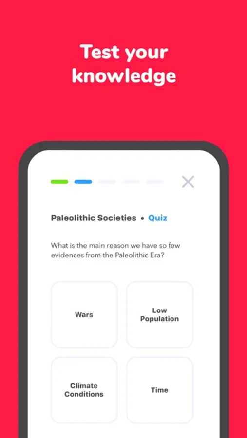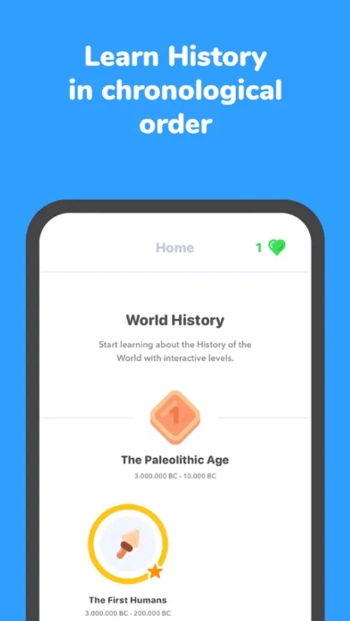 Learn about the History of the World in a fun way. Work your way through the major events of History and expand your knowledge on that subject through quick lessons and small tests.