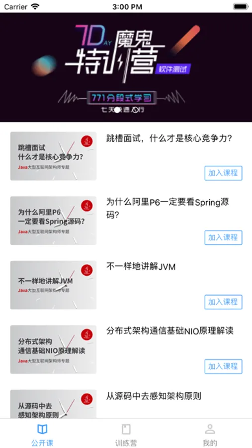 目前在开设了Java架构、人工智能、大数据、软件测试、Web前端等免费课程。