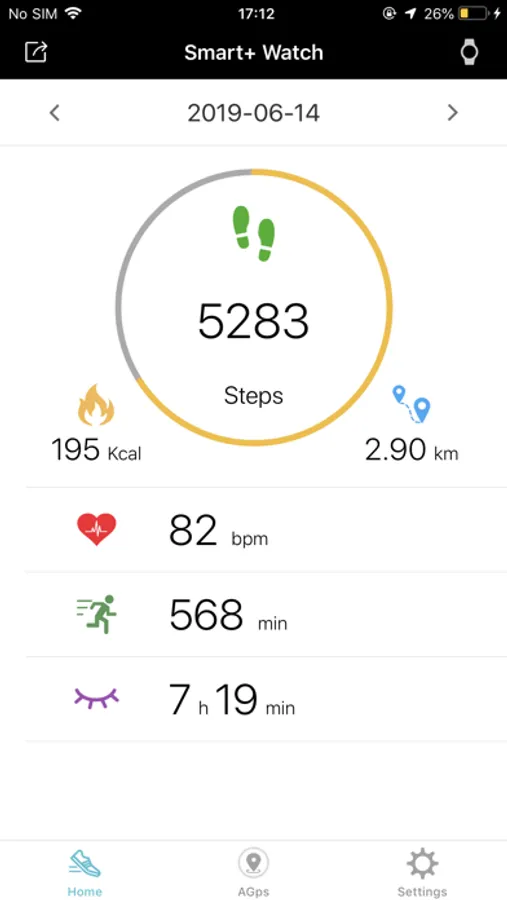 Smart+ Watch can display daily activity data including steps, calories burned, and distance.