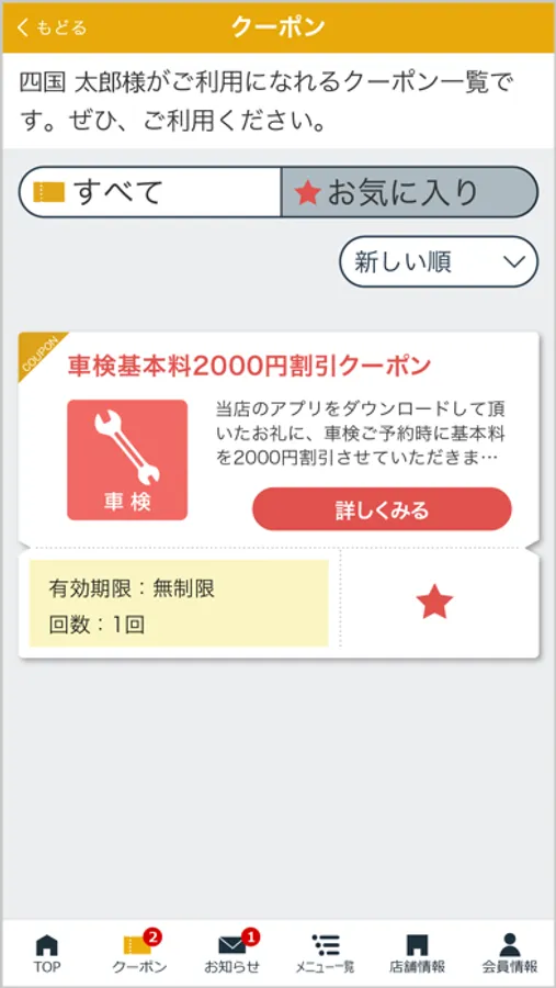 当社のアプリ「四石 Car Life Style」ではアプリで簡単に洗車・コーティングなどのご予約や愛車のメンテナンス管理が可能の他、ご登録いただいた店舗で利用いただけるお得なクーポンや各種メニューの割引情報を配信しております。