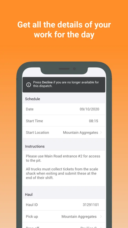 Know all the details. Instant access to all the information about a haul from your broker or contractor. Reach a new level of insight into your work.
