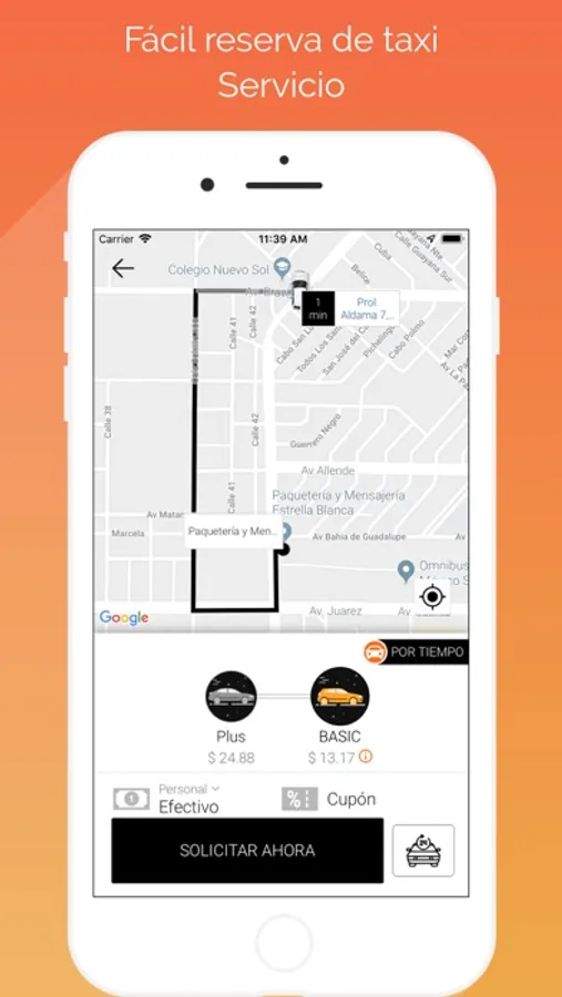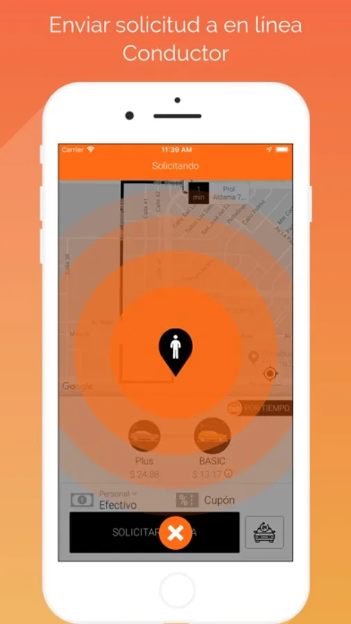 La aplicación es muy fácil de usar, nuestro sistema detecta automáticamente tu posición o puedes mover un pin en el mapa al punto exacto donde deseas que la unidad te recoja. También tienes la opción de teclear tu dirección exacta o escogerla de tus direcciones previamente guardadas en la sección de Favoritos. Tu destino lo podrás indicar de manera opcional. Una vez que tu solicitud sea aceptada por algún conductor podrás saber el nombre del conductor, su fotografía, número de unidad, tipo de vehículo, etc., y podrás ver tu unidad acercándose a Tí en tiempo real.