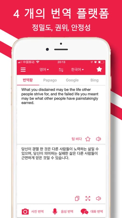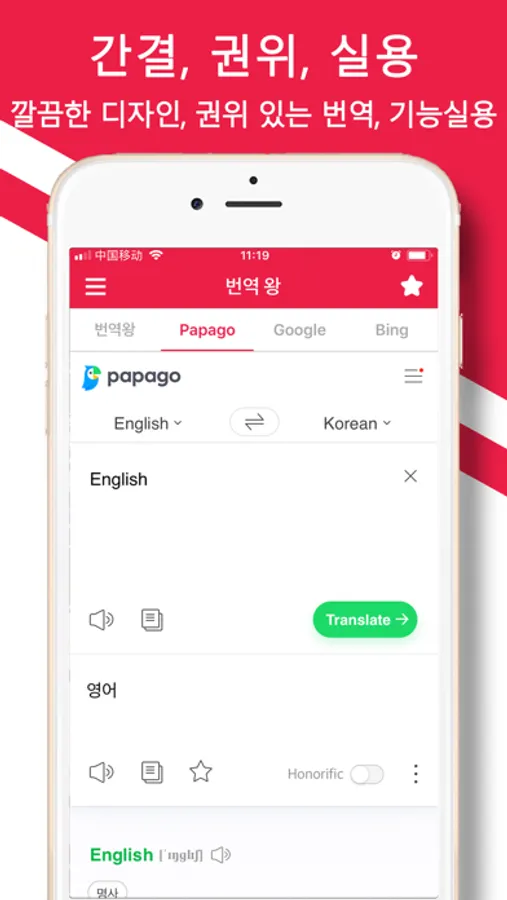 특징: Papago, Google, Bing 플랫폼 통합! 단순하고 강력한, 오직 번역만을 위한, 복잡하고 쓸모없는 기능들을 제거하라! 번역 전문가!