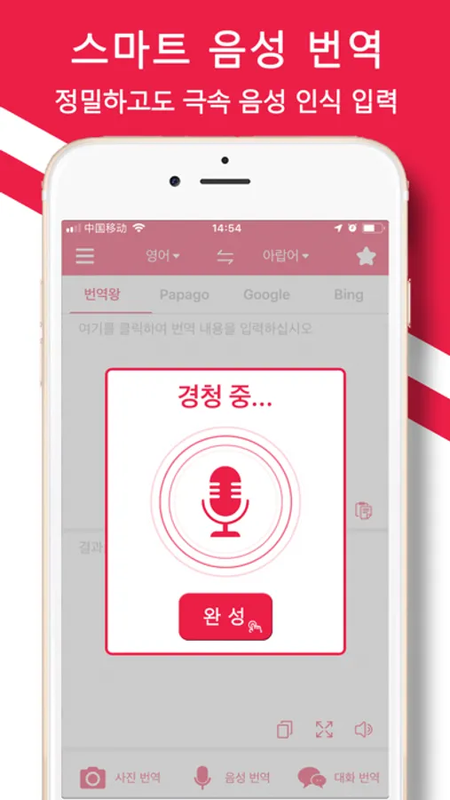번역하기 위해 말해라. 번역하고 싶은 것을 찍어 앱이 번역을 읽게 하거나 화면에서 읽게 한다. 번역왕은 당신이 자신 있게 새로운 언어를 말할 수 있게 해준다.