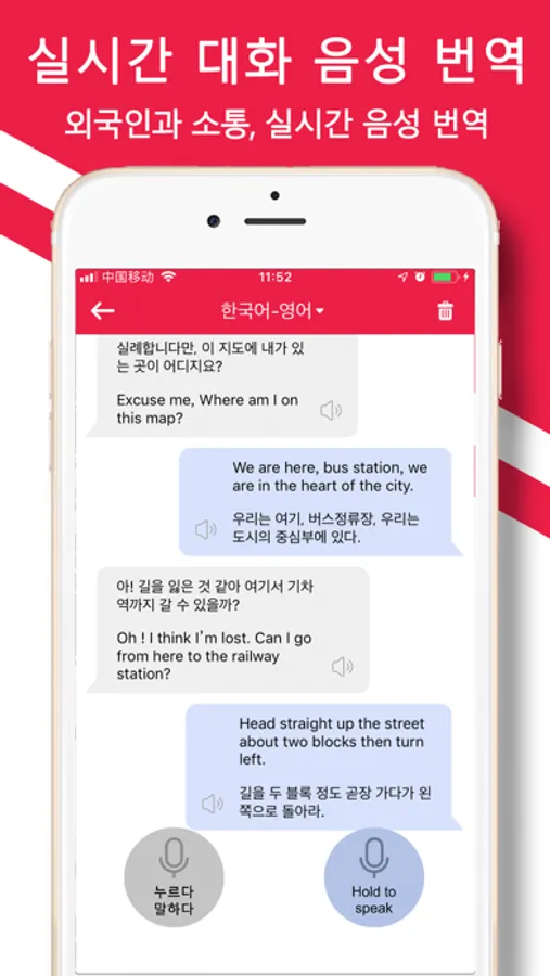 외국어로 대화하다. 이제 당신은 전세계의 사람들과 효과적으로 의사소통을 할 수 있다. 번역왕은 외국인과 당신 사이의 대화를 실시간으로 통역한다.