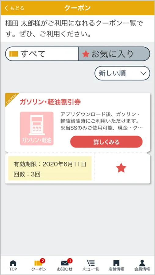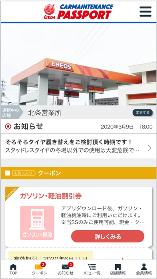 当社のアプリ「植田石油カーメンテナンスアプリ」ではアプリで簡単に洗車・コーティングなどのご予約や愛車のメンテナンス管理が可能の他、ご登録いただいた店舗で利用いただけるお得なクーポンや各種メニューの割引情報を配信しております。