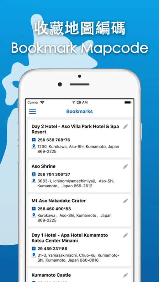 - 在沒有網絡的情況下隨時查閱收藏了的MAPCODE。