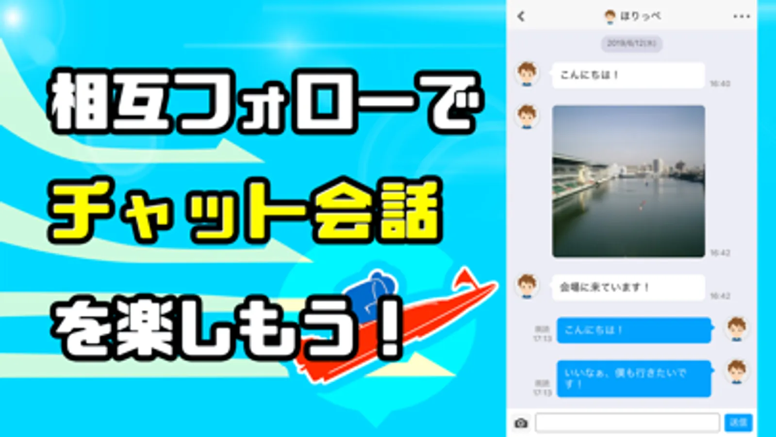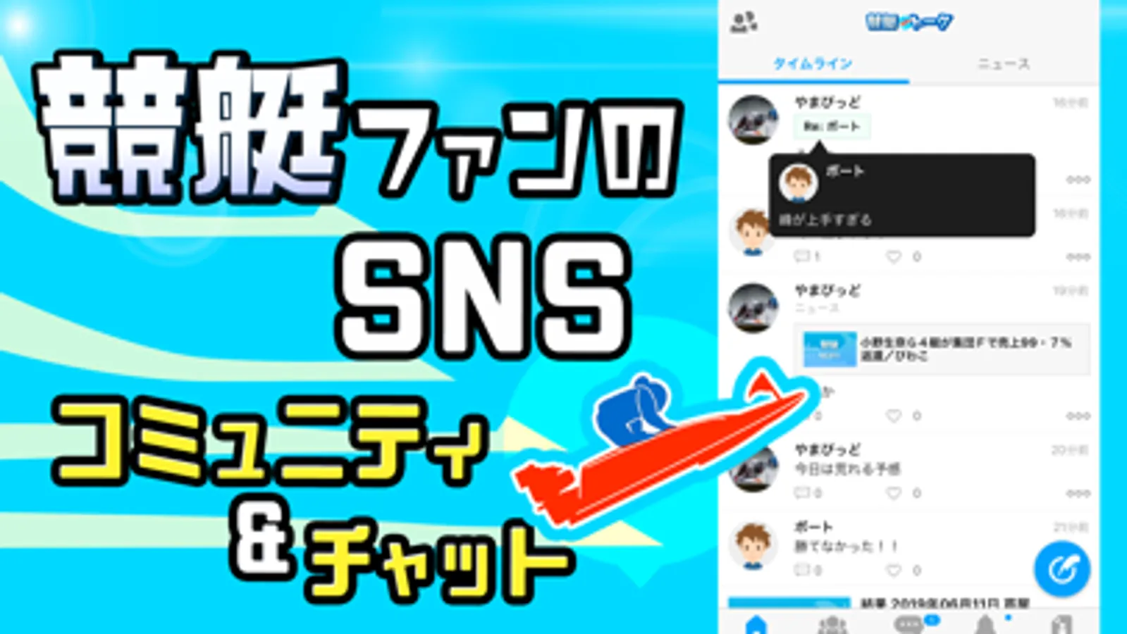 ユーザー同士、いつでもどこでも競艇情報を通してリアルタイムのコミュニケーションができます。