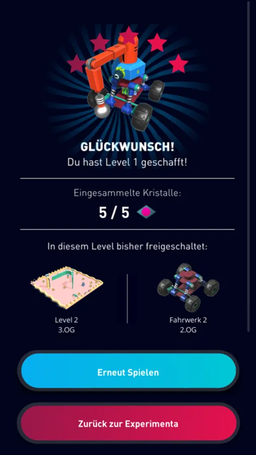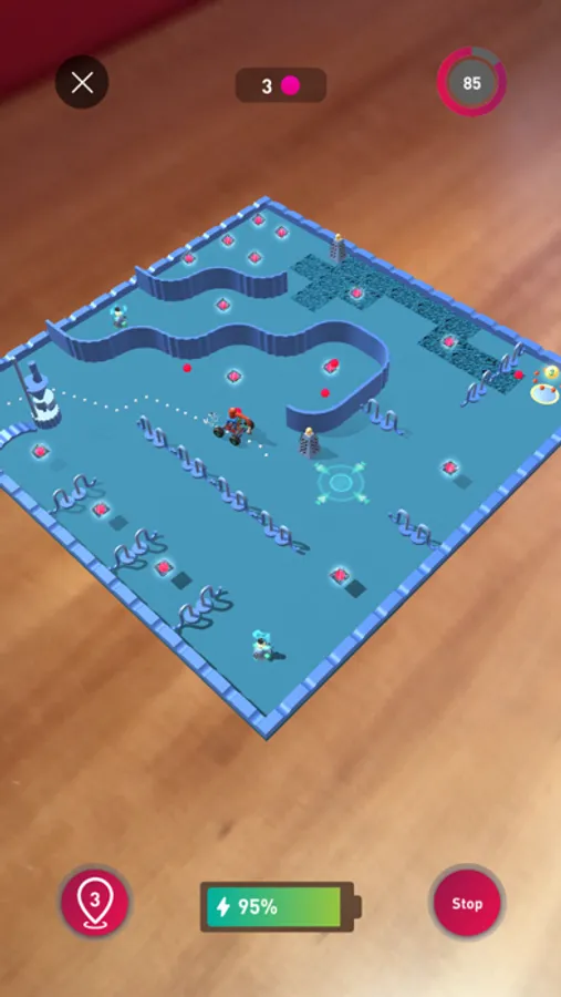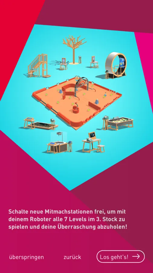 Mit der experimenta explorer App entdeckst du das Science Center experimenta in Heilbronn mit deinem Roboter spielend leicht. Bewege dich mit deinem Smartphone im Park oder im Wohnzimmer mit Virtual und Augmented Reality im eindrucksvolle Gebäude aus Glas und entdecke dabei Mitmachstationen, die dir auch in der realen experimenta begegnen. An den Mitmachstationen der ersten beiden Stockwerke kannst Du Bauteile sammeln, mit denen du den Roboter in der Werkstatt bestückst. Im dritten Stockwerk warten an sieben Mitmachstationen spannende Level, in denen du deinen individuellen Roboter dann testen und Diamanten sammeln kannst. Diese kannst du für weitere Bauteile einsetzen und deinen Roboter optimieren. Welches ist der kürzeste Weg, um möglichst viele Diamanten einzusammeln?