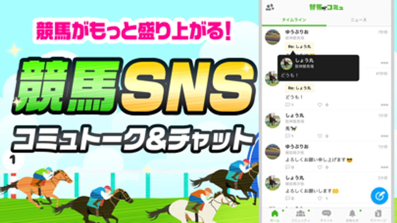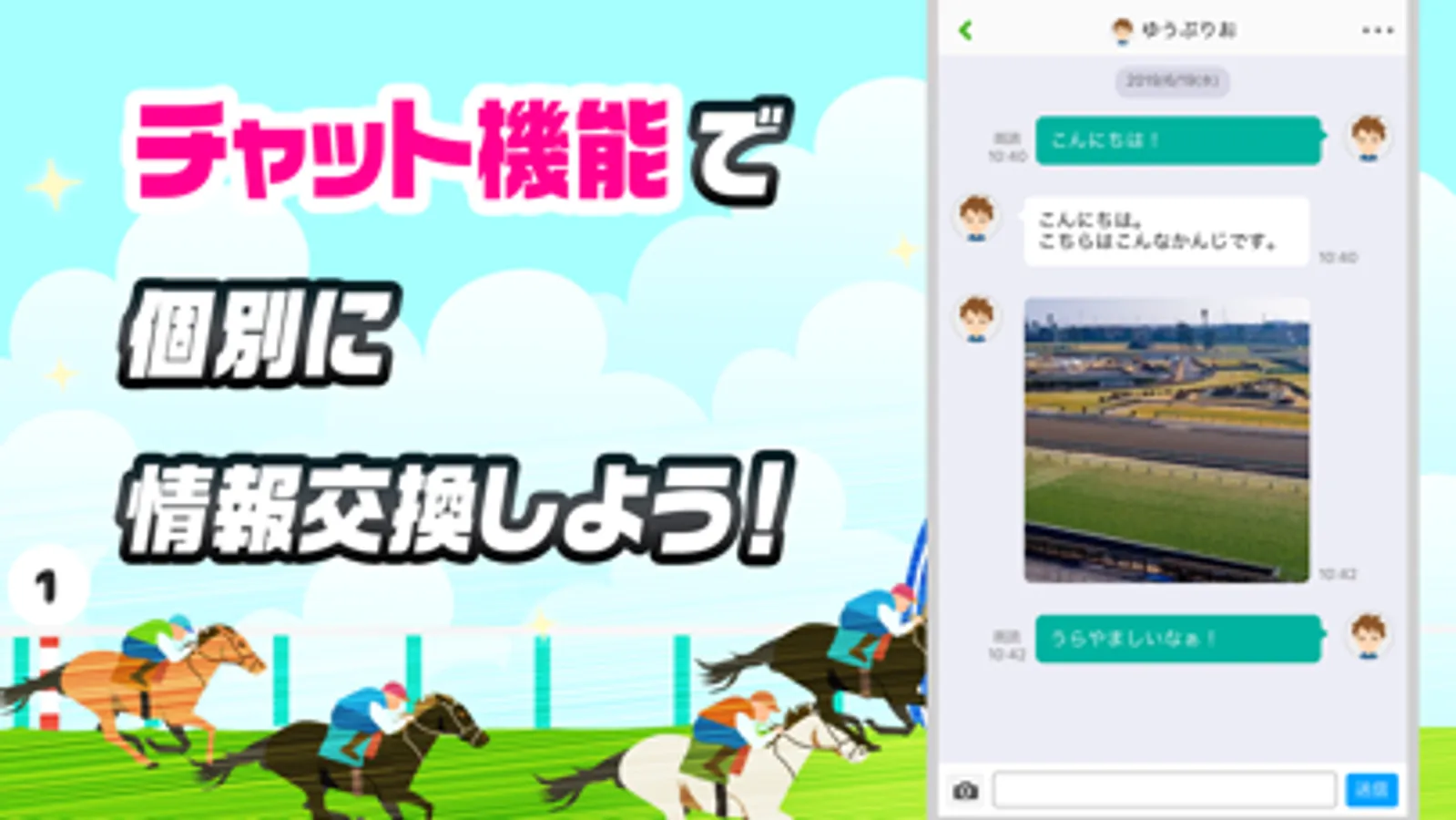 ユーザー同士、いつでもどこでも競馬情報を通してリアルタイムのコミュニケーションができます。