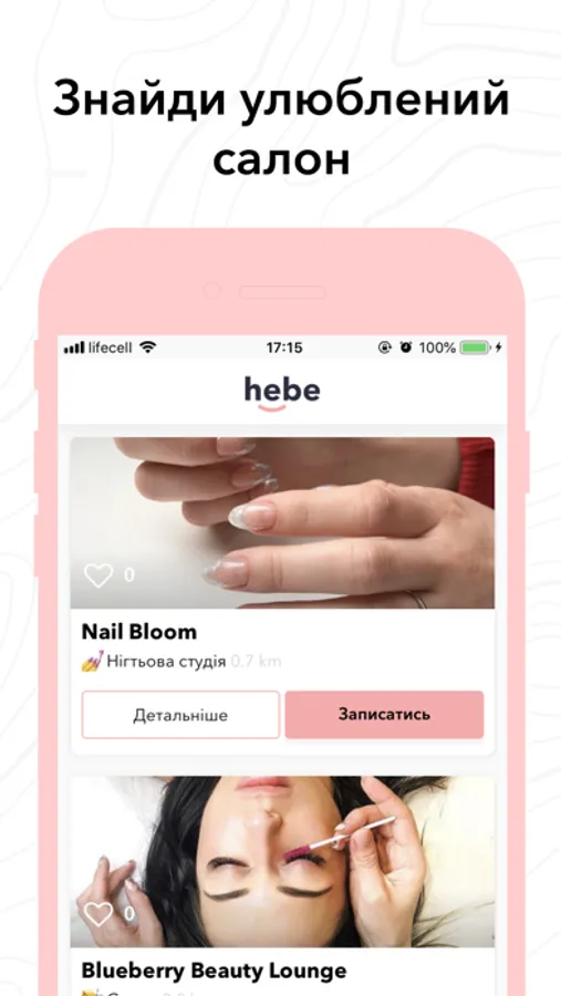 Hebe (Хібі) обирає найкращі салони краси для тебе і робить запис в салон простим і зручним. Більше жодних дзвінків чи переписок з салоном.
