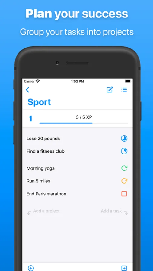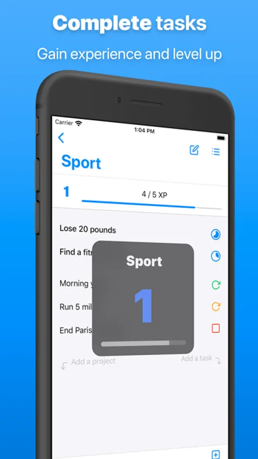 Even if the app uses video game concepts and has nice animations, its minimalist and clean design allows you to stay focused on your goals. You are not playing a game, you are playing your life!
