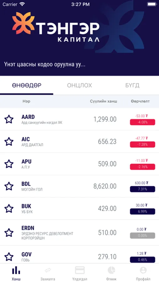Энэхүү аппликешнийг ашиглаж брокерийн үйлчилгээг авахын тулд та манай компани дээр дансаа нээлгэсэн байх шаардлагатай.