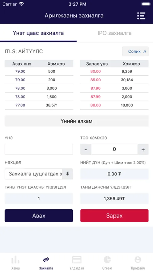 - АТТ дэх данс: Анхдагч зах зээлийн дансанд IPO-д хуваарилагдаагүй үлдсэн мөнгөө зарлагадах