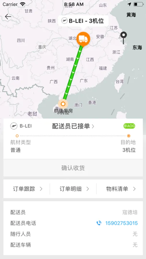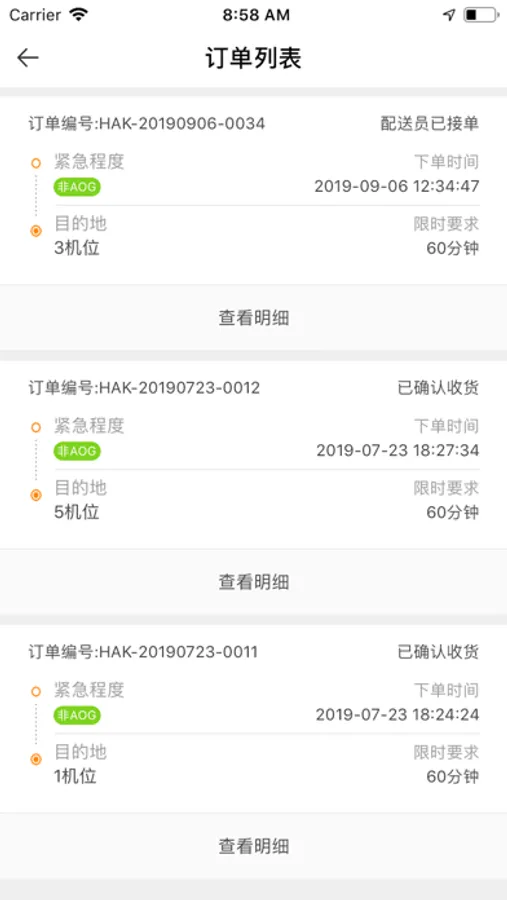 针对国内机场飞机维修,机场的机务人员可以通过我们的App下订单,仓库的配送人员可以去接该订单,进行核料确认后送达物料到指定地点,对比以往我们可以实时的监控该订单的动态,避免一些不必要的事情,提高安全性,对物料和物流的配送进行的更加电子信息化的管理。