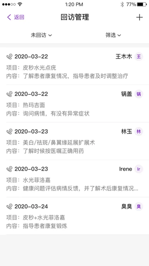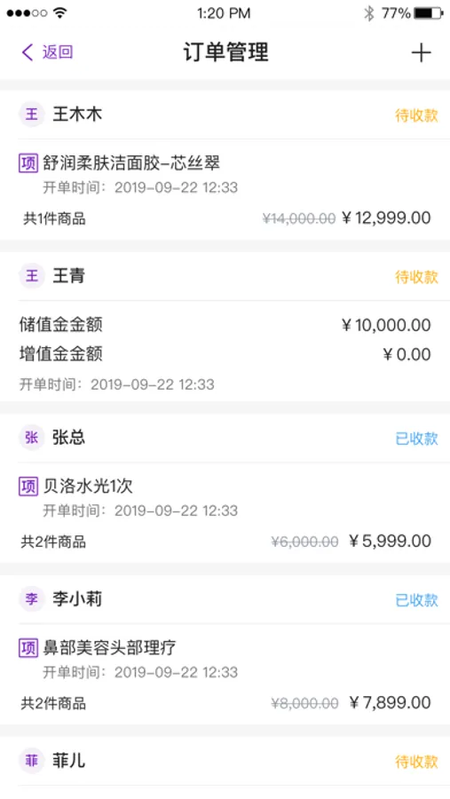 帮助医生、前台、医学助理、店长等角色处理:工作审批、报表查看、预约/到店、回访、客户管理、订单管理等工作。同时支持员工之间协作、并与PC端云管理系统数据实时同步。