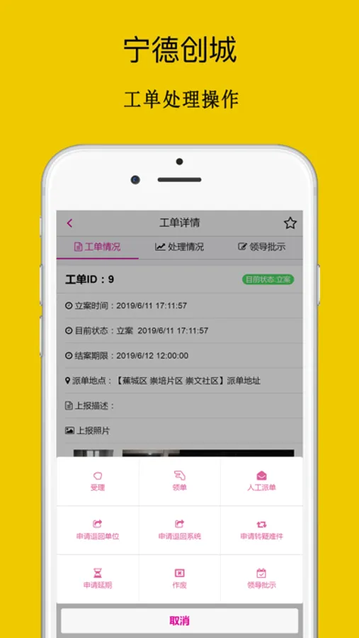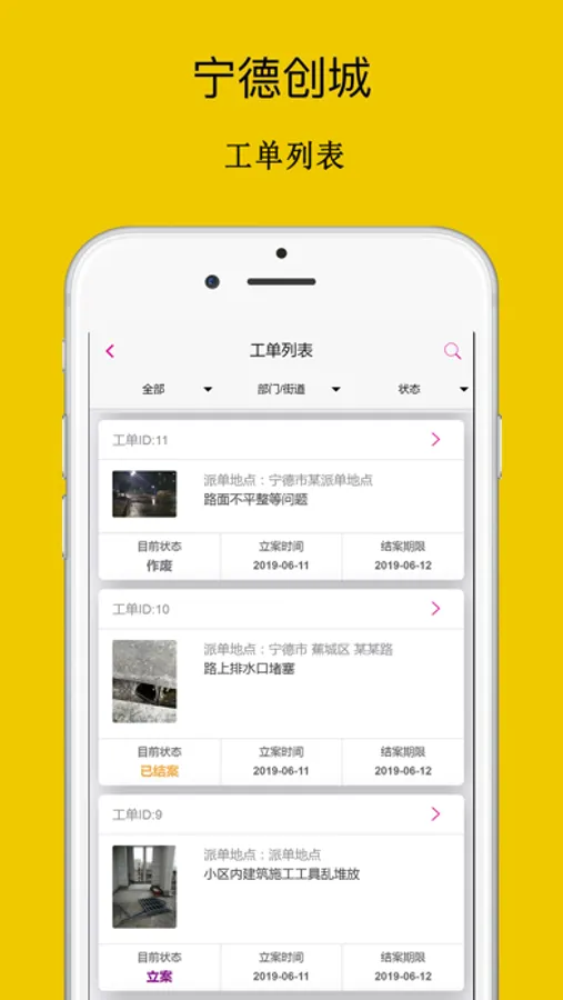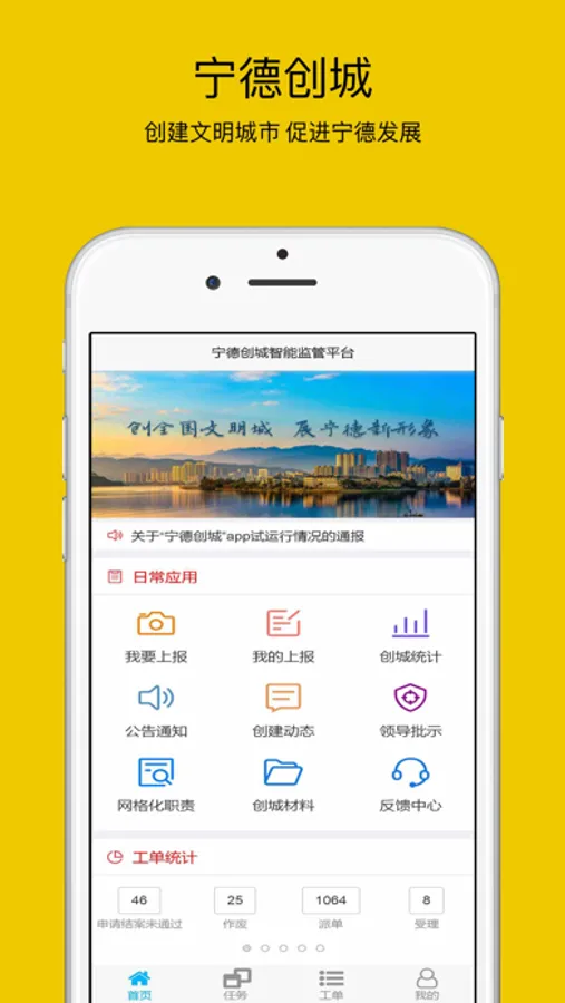 宁德市创城管理,实现巡查、上报、整改、反馈、督导、问责流程化工作模式,市、街道、社区三级网格化管理。问题责任化、从发现问题上报、系统派单、整改部门的工单接收和整改处理流程自动化。