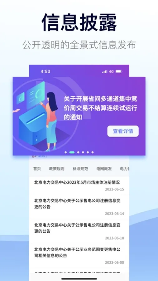 e-交易App是北京电力交易中心有限公司推出的一款专业移动应用,致力于为电力交易市场用户提供全方位的服务。通过套餐引擎和用户画像运营,实现灵活、便捷的电力交易体验。用户可以参与双边协商和零售交易,享受移动交易服务的便利。而独特的亮点是提供绿电交易和绿证交易功能,推动可持续能源交易。通过信息披露和视频快讯,及时发布市场动态和政策法规,为用户提供有价值的信息服务。安全可靠的交易环境保护用户的隐私和交易数据。立即下载e-交易App,尽享优质、高效的电力交易服务。
