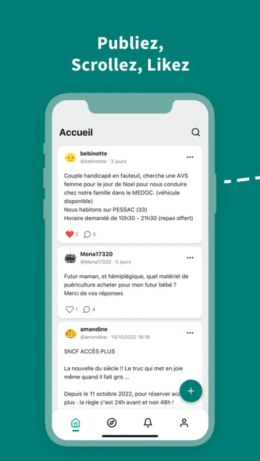- Publiez, scrollez, commentez, likez ... pour questionner, partager, discuter, rencontrer et bien plus encore. L'entraide n'a de limite que celles que vous poserez !