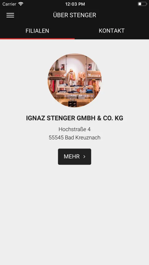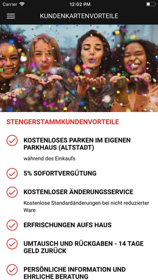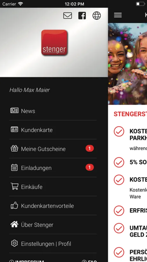 Meine Kundenkarte anzeigen: Mit dieser Funktion können Sie sich als Stammkunden von stenger ausweisen. Ihre Karte wird überflüssig.